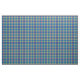 Motif traditionnel de plaid aux nuances de bleu, de jaune et de vert, avec les points culminants de rouge, blancs et de pourpre.