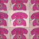 Le tissu présente des rangées de téléphones rotatifs rose vif, imprimés sur un arrière - plan rose pâle. Créé à partir d'une illustration de marqueur originale.
