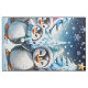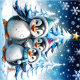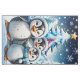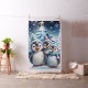Three adorable penguins stand in festive winter hats and colorful scarves. Their big, round eyes shine with joy, while their fluffy white bellies contrast with the bright blue Christmas tree decorated with twinkling lights. The penguins smile happily and seem ready to celebrate the magic of the holiday season. All around them, delicate snowflakes dance through the air, while twinkling stars shine in the sky, creating a warm, festive atmosphere. This design perfectly captures the spirit of Christmas - full of joy, friendship and winter wonder!