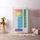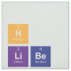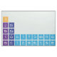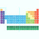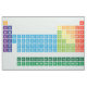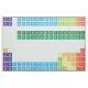 Tissu de table périodique comportant la table périodique des éléments, avec chaque groupe d'élément marqué dans des couleurs d'arc-en-ciel.
