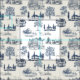 Marine et crème toile motif de mon propre design. Les images individuelles sont des maisons américaines historiques dessinées au XVIIIe siècle, avec l'aimable autorisation de la collection du domaine public de la Bibliothèque publique de New York.