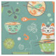 Dans mon illustration vectorielle originale, Tom cat rêve de sa soupe de nouilles de fruits de mer préférée, entourée de cuillères de pattes de chat, de éclats de cuillères, de nouilles, de baguettes et plus encore. J'ai créé ce design pour le challenge de conception de la bol à nouilles de Spoonflower.