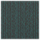 Ce tissu a un design moderne du milieu du siècle de lignes avec demi-rectangles en turquoise sur un champ de noir.