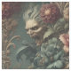 En un long chemin de la douleur, des visages tumultueux et des crânes creux se dessinent à travers un travail de défilement opulent, enchevêtré de roses dans le rose pâle et le cérulean profond. Une tapisserie où l'angoisse fleurit éternelle, parfaite pour les draperies, les tapisseries, ou les vêtements imprégnés de drame baroque et d'allure spectrale.
