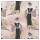 Ce dessin détaillé d'inspiration française des années 1920 présente une femme avec une belle robe noire et rose tenant un verre de vin sur un arrière - plan rose roux orné d'ornements floraux d'or clair.
