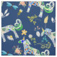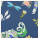 Plaisir à un enfant ou à un fanatique de licornes. Une grande impression en tissu extensible est créée avec des licornes ornementales sur la marine, accentuées de libellules et de plantes végétales florales. Choisissez parmi différentes tailles et types de tissus.