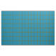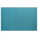 Ce tissu contient un motif à chèque turquoise avec garniture jaune-or et noire.