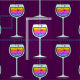 Un verre de vin brillamment coloré a rempli d'arc-en-ciel vintage d'amusement de vin, miroitant des bulles de coeur dans un hommage contemporain à l'établissement vinicole. Conception parfaite de partie pour toute célébration d'heure heureuse ou de cocktail.