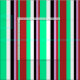 Ce design a un motif rayé avec des couleurs comme le vert, le rouge, la prune, le noir et le blanc.
