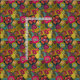 Un motif floral abstrait dans les tons lumineux vert, or et rose magenta.