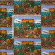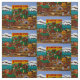 L'image du tissu est tirée d'un tableau original intitulé "Ville Frontière" de l'artiste international Jennifer Lake. On peut voir des jouets vintages, des trains, des jouets en fer et même des cow-boys qui les branlent. N'importe quel petit cowboy ou cowgirl adorerait ce tissu pour décorer leurs chambres.