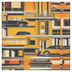 Conception Retro Cars Mustard Mid Century Design Vintage Cadillac inspiré design géométrique pour les amateurs de voiture.