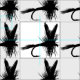 Silhouette noire d'une mouche pêche à sec pour customiser avec votre propre salutation, nom, message, etc