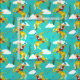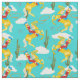 Yeehaw ! Ajoutez une touche sauvage à votre prochain projet de couture avec ce tissu et c'est motif sauvage d'ouest. Une cowgirl et un cheval aux couleurs vives, lassos, cactus, fer à cheval et nuages sont dressés contre un arrière - plan bleu vif dans ce magnifique imprimé occidental campy.