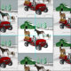 Tissu Western Farm Horse Ranch Red ATV Chien et grange