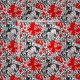 Tissu William Morris Iris et Lily, noir, blanc et rouge