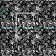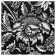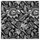 Tissu dans un vintage William Morris, Art Nouveau, imprimé floral de tournesols stylisés, numériquement rehaussé et coloré, en noir et blanc, accentué de gris argenté / gris