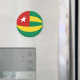 Le drapeau du Togo a été soigneusement fixé à la forme circulaire de cet aimant. Une façon décorative de promouvoir la culture togolaise.