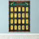 Imprimé en toile qui présente 20 dieux et déesses égyptiens antiques. Ces dieux et déesses populaires de l'Egypte ancienne apparaissent sur un modèle de cartouche d'or avec leur nom sous chaque divinité. Les dieux et déesses ordre du haut à gauche : Amun, Ra, Osiris, Maat, Horus, Hathor, Bastet, Nut, Sekhmet, Anubis, Isis, Anhur, Khnum, Ptah, Anuket, Sobek, Geb, Thoth, Tefnut et Set.