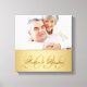 Une toile photo carré de douze en damas or et police de script avec la photo, l'année et le nom du couple pour créer un merveilleux cadeau d'anniversaire de 50ème mariage d'or.