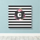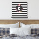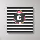 Cette impression de toile enveloppée 12" x 12" à panneau unique a un motif rayé noir et blanc avec un monogramme floral au centre. Vous pouvez personnaliser cet élément en ajoutant votre nom ou votre initiale à l'aide du modèle.