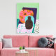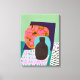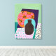 Toile dans un style boho moderne abstrait d'un vase et table dans les tons d'aqua doux, corail profond orange, noir et blanc