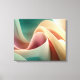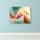 The image showcases a close-up of abstract waves formed by fabric. The fabric features a subtle texture and is colored in pastel shades of teal, pink, and peach. The waves create a sense of movement and depth. The lighting is soft and diffused, enhancing the gentle and calming mood of the image. The background is blurred, focusing attention on the fabric's form and color transitions.