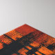 Make a dramatic statement with this compelling piece of Abstract Expressionism. This artwork features a bold, layered grid or crosshatch pattern in striking black against a fiery background of orange and deep red.