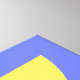Un design minimaliste art moderne abstrait de formes géométriques aux couleurs bleu foncé et jaune clair sur un arrière - plan bleu moyen.