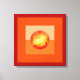 Un design d'art moderne et géométrique abstrait de carrés dans les tons rouge et marron avec un soleil rouge orange vif.