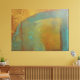 Une toile d'art avec une plaque d'gelli abstraite imprimé dans les tons dorés jaunes et les couleurs turquoises bleues. [e51b57ef1adc]