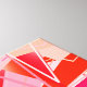 Toile enveloppée dans une composition moderne abstraite du milieu du siècle Kandinsky, géométrique, dans les tons rose corail doux, accentuée de corail orange et rose fuchsia