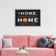 Bienvenue à vos invités avec ce éffrayant plaisir personnalisé de toile d'Halloween. La conception de typographie élégante comprend le libellé "Home Sweet Haunted Home" avec texte personnalisé pour votre nom de famille et les accents d'un citrouille jack-o-lanterne effrayant, araignée déplaisante pendante, et araignée arrière - plan web. Comprend un jeu de couleurs noir, gris, blanc et orange.