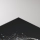 Un adolescent skateboarder se promène dans une pente raide à la traîne derrière lui, sur le noir, dans une aura lumineuse et pétillante.