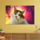 Portrait d'un chat calico mignon et adorable avec les yeux verts, le nez rose et la fourrure veloutée multicolore. Le beau animal regarde droit dans vos yeux. Une peinture numérique à partir d'une photo. Elégant et drôle imprimé de toile étirée pour décorer votre lieu. Personnalisable . Vous pouvez modifier l'image. Vous pouvez utiliser l'image de votre propre chat au lieu de l'image modèle si vous le souhaitez. Vous pouvez transférer ce design à une variété d'autres produits de votre choix. Veuillez utiliser le bouton "Modifier la conception" ou "Personnaliser" (selon le coque) pour ajuster l'image à la forme du produit particulier. Il vous transmettra à l'outil de conception. Utilisez l'option "Remplir/Remplir" (menu à droite de l'outil de conception). Vous pouvez mettre à l'échelle, faire pivoter, retourner l'image sur le modèle du produit, et vous pouvez y ajouter du texte vous-même. Soyez créatif, achetez-en un, amusez-vous et soyez heureux !