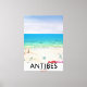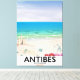 Antibes, château de sable de dessin animé français sur un poster de vacances sur la plage.