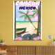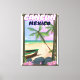Plage de sable de Cancun affiche de plage de Mexico, plage de sable et vieux bateau de pêche à imprimer vacances.