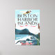 Boston Harbour Massachusetts, affiche de voyage de style vintage américain présentant un avion léger classique survolant les îles.