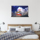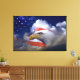 Bald Eagle poster 4 juillet vient avec une belle tête d'aigle chauve dans le ciel avec un drapeau américain derrière lui dans les nuages.Ceci est une belle photo sur cette toile enveloppée 10