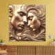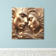 Cette toile saisissante présente deux visages sereins, un masculin, un féminin, sculptés dans un style fluo et gaufré. Rendu dans de riches tons bronze et or, leur front se touche dans un moment d'intimité tranquille. Les cheveux et les contours se fondent les uns dans les autres comme le métal liquide, créant un sentiment de mouvement et une connexion émotionnelle profonde. La texture imite la sculpture en relief, ce qui en fait une pièce audacieuse et élégante pour n'importe quel espace.
