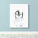Toile Animaux bébé manchot à l'aquarelle Fleurs enneigés