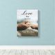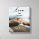 Célébrez votre histoire d'amour unique avec ce design élégant de style personnalisé. Avec une belle photo d'une bague de fiançailles et de mains entrelacées, cette pièce est conçue pour ressembler à une plaque commémorative personnalisée. Parfait comme cadeau de mariage, cadeau de fiançailles ou surprise d'anniversaire sentimentale pour votre conjoint. Il capture l'éternel "Amour" et le moment précis où votre voyage a commencé.