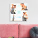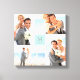 Toile Aqua Modern Grid Monogramme Mariage 4 Photo Collag
