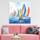 Les voiliers aux baskets colorées glissent sur la mer vibrante, leurs voiles capturent le vent dans une régate animée