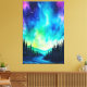 Elégante aquarelle Celestial Northern Lights aurora borealis avec de magnifiques couleurs bleu, violet et vert et paysage hivernal