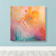 Cette peinture abstraite à l'aquarelle présente un harmonieux mélange de tonalités orange vif, rose doux et turquoise cool. Les coups de pinceau fluides et les lavages de couleur en couches créent un sens du mouvement et de la profondeur, avec les couleurs qui fusionnent et se superposent doucement pour former une composition organique et rêveuse. L'interaction de tons chauds et cool ajoute du contraste et de l'équilibre, évoquant à la fois énergie et tranquillité dans une esthétique moderne et abstraite.