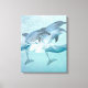 Des dauphins de plage avec des dauphins d'aquarelle nautique qui se fracassent dans l'océan.