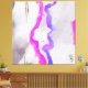 Une aquarelle abstraite dans les tons violet, rose et gris.