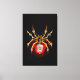 Araignée mécanique à vapeur avec or, engrenages en laiton et lampe en verre rouge sur un arrière - plan noir. Style Steampunk.