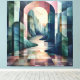 Ajoutez du raffinement à votre décor avec ce chef-d'oeuvre géométrique abstrait. Doté d'une voûte imposante encadrant une rivière sereine serpentant à travers des sommets de montagne en couches, la composition associe des teintes pastel douces à des formes structurales audacieuses. L'harmonie de la lumière et de l'ombre crée profondeur et intrigue, rendant cette oeuvre parfaite pour des intérieurs modernes, minimalistes ou d'inspiration boho. Idéal pour les amateurs d'art à la recherche de designs innovants qui évoquent à la fois la tranquillité et l'émerveillement, cette toile transforme les murs en points focaux époustouflants.